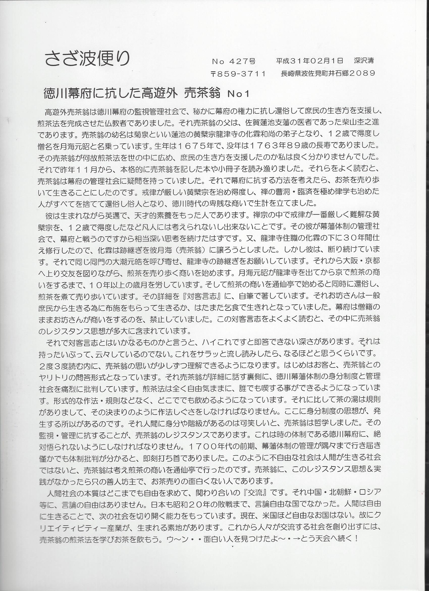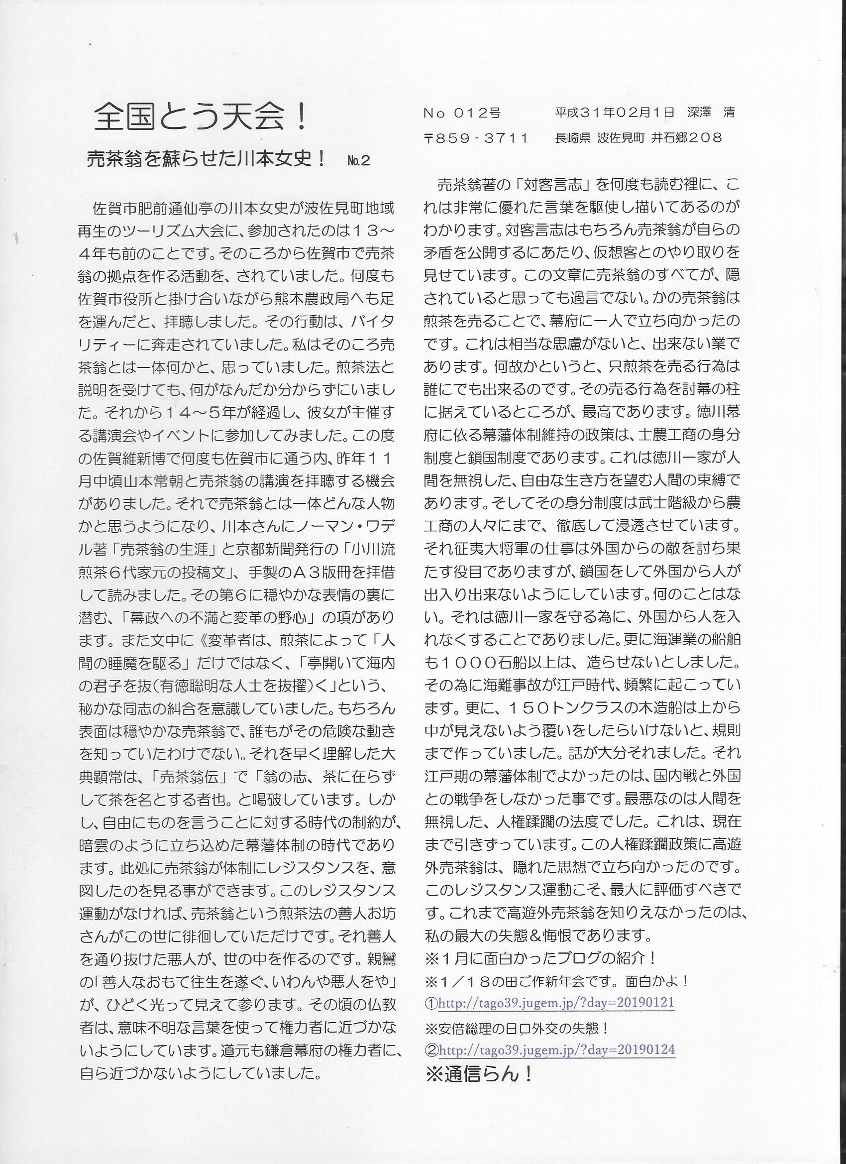 波佐見町。焼物のまちです。近年、特に波佐見町の焼物と街づくりは注目を集めています。 本会が波佐見町地域再生のツーリズム大会に参加させていただいた、十数年前から、NPO活動などを勉強させていただいています。 波佐見町の先頭に立ち頑張られているお一人が、深澤 清さんです。深澤さんは情報発信 さざ波便り」を発信しておられます。今回は売茶翁でしたので深澤さんのご了解を得て、アップさせていただきます。
