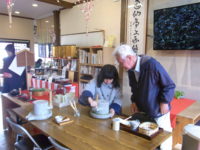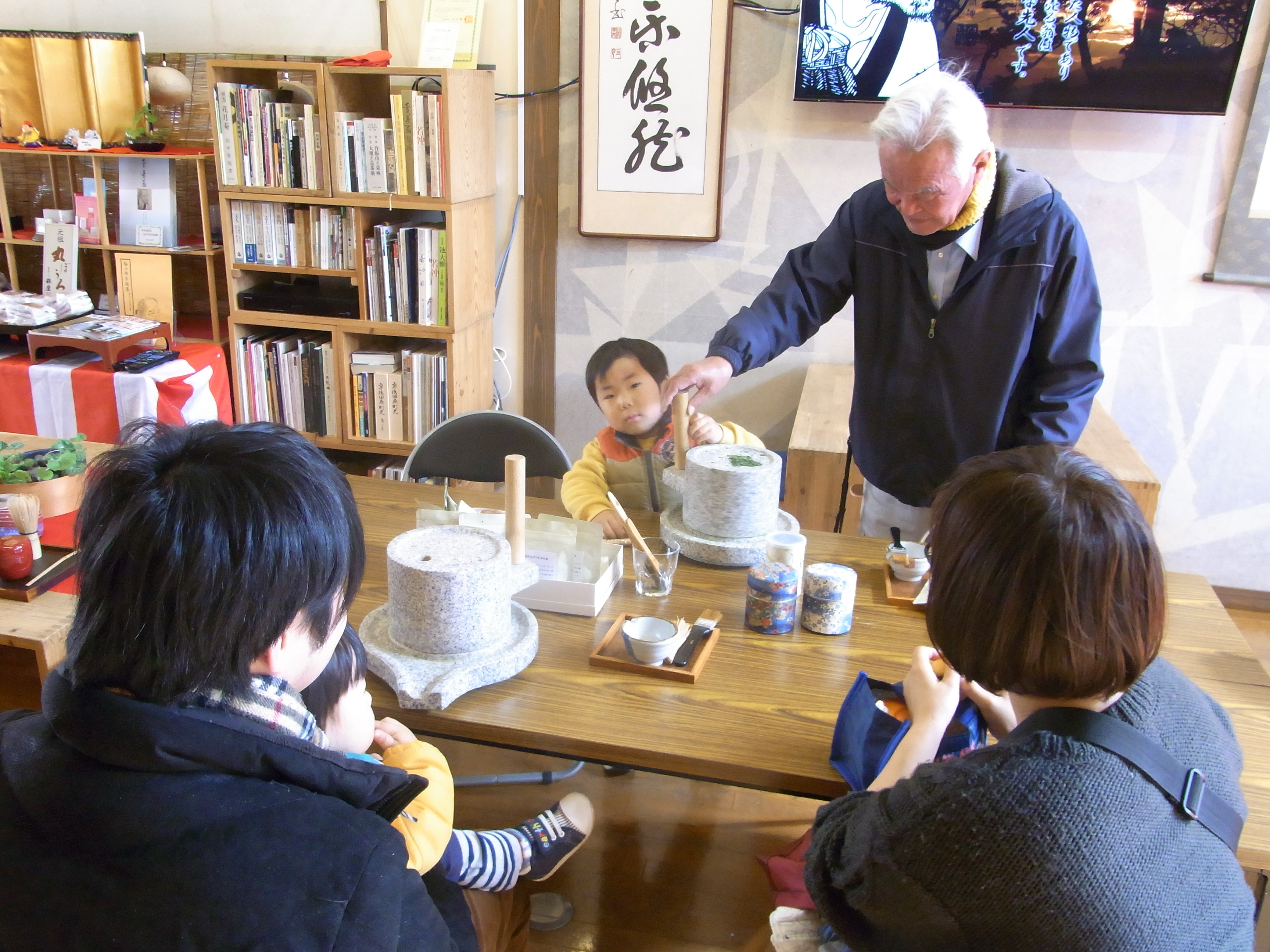 2/23(土)、24(日)の両日は、抹茶ひき体験です。 抹茶は「碾茶」を石うすで、ひきます。 仕上がった抹茶で早速お茶をたてて頂きます。 残った抹茶は、お持ち帰りです。 お菓子は、鶴屋の「うぐいす餅」でお召し上がりください。