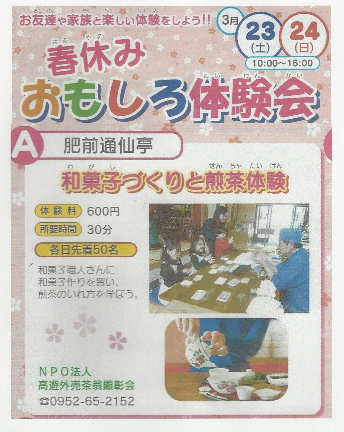 開催日 3月23、24日 体験料 600円