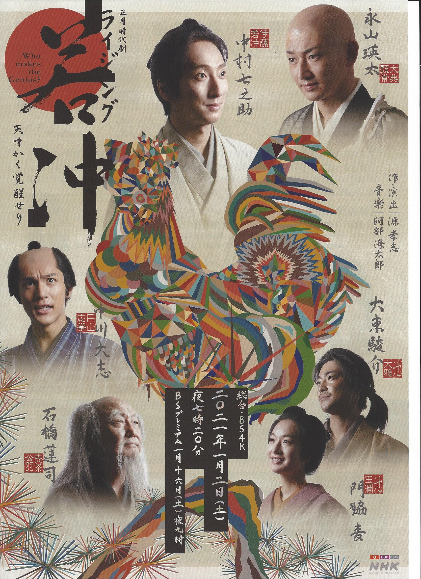 さらに、朗報が届きました。NHKテレビで売茶翁が全国に発信されます。それは、NHK正月時代劇「ライジング若冲~天才はかく覚醒せり~」(総合テレビ1月2日・19:20~)です。売茶翁が新春早々に、全国にリリースされます。