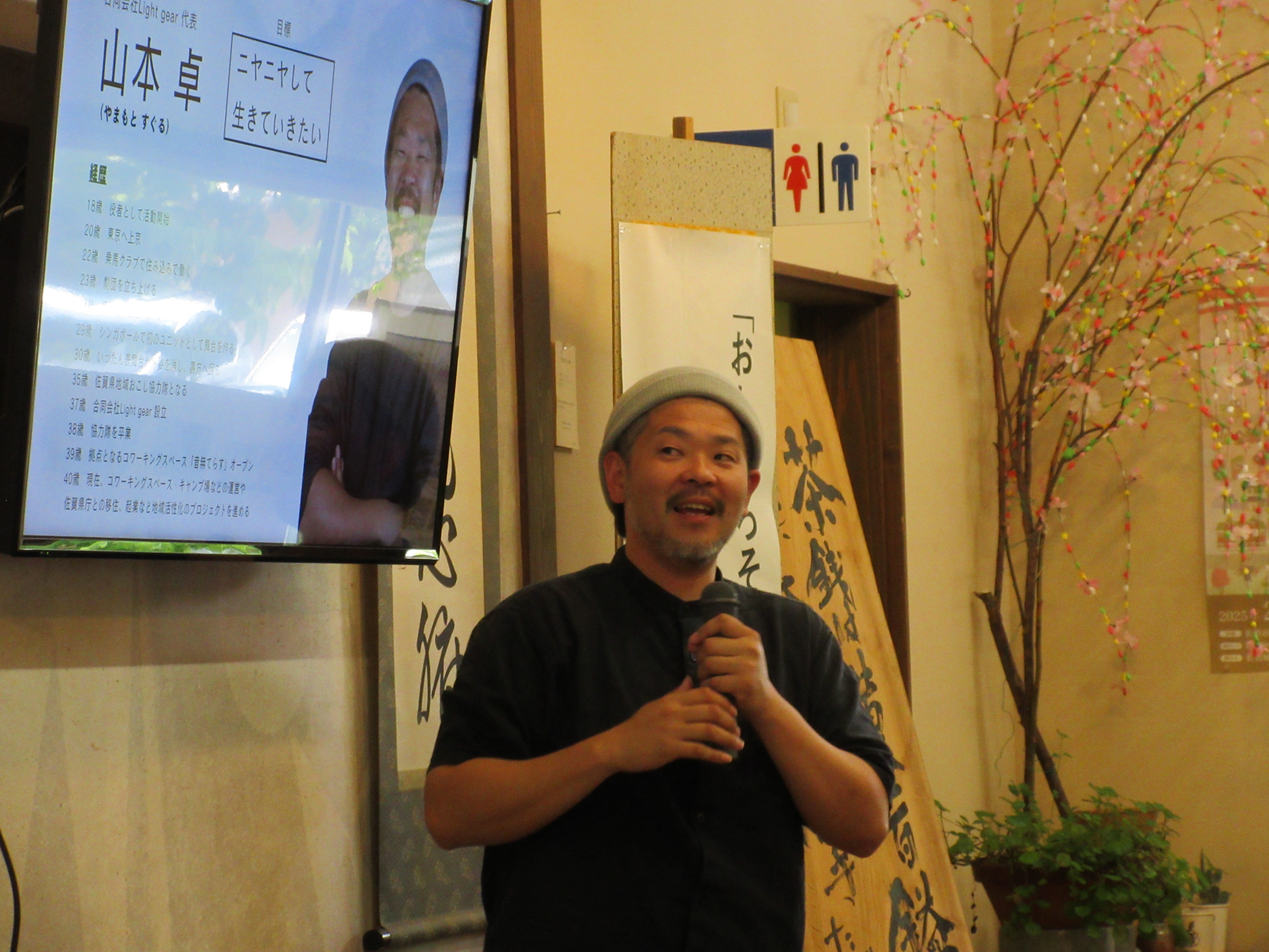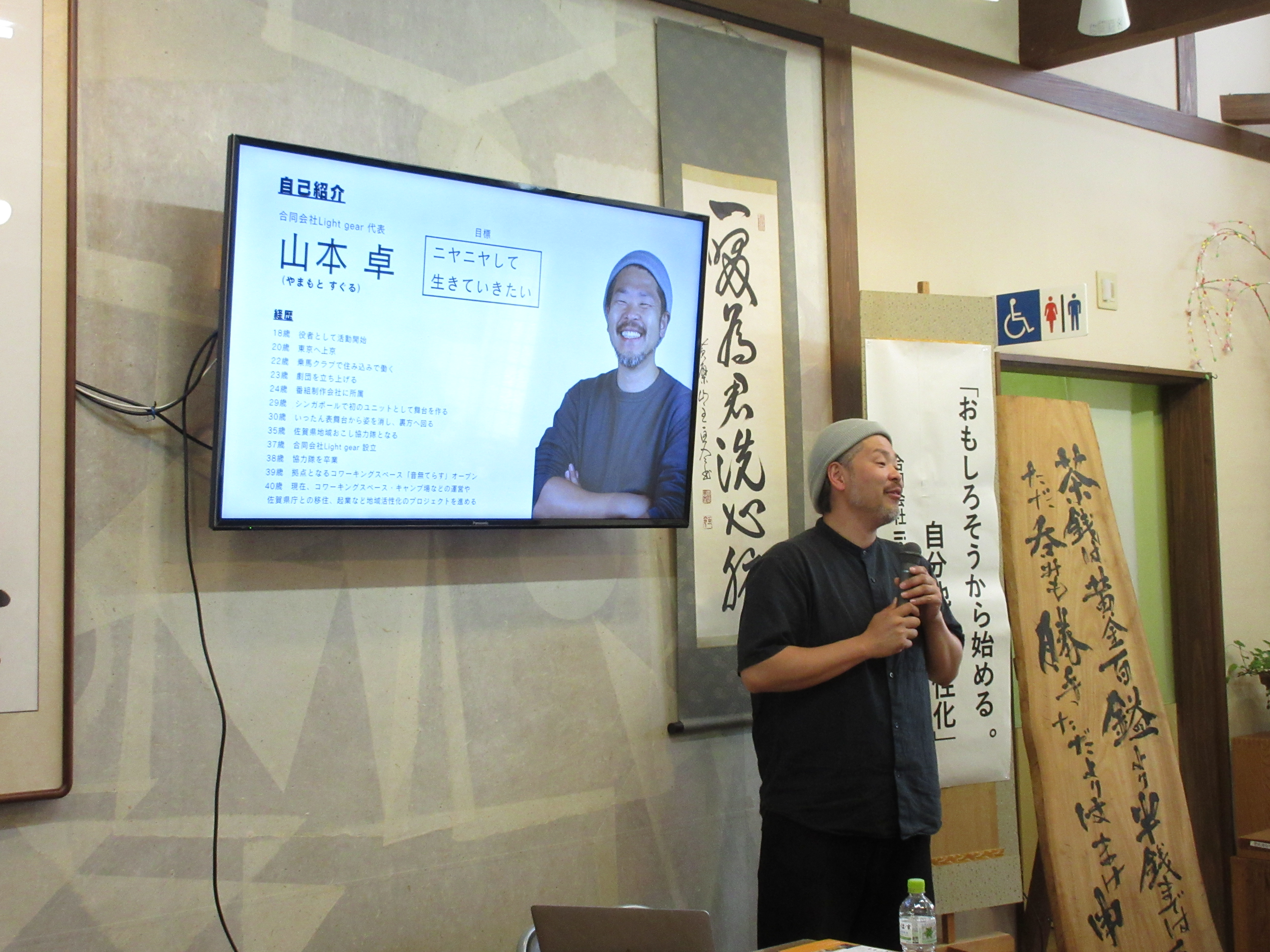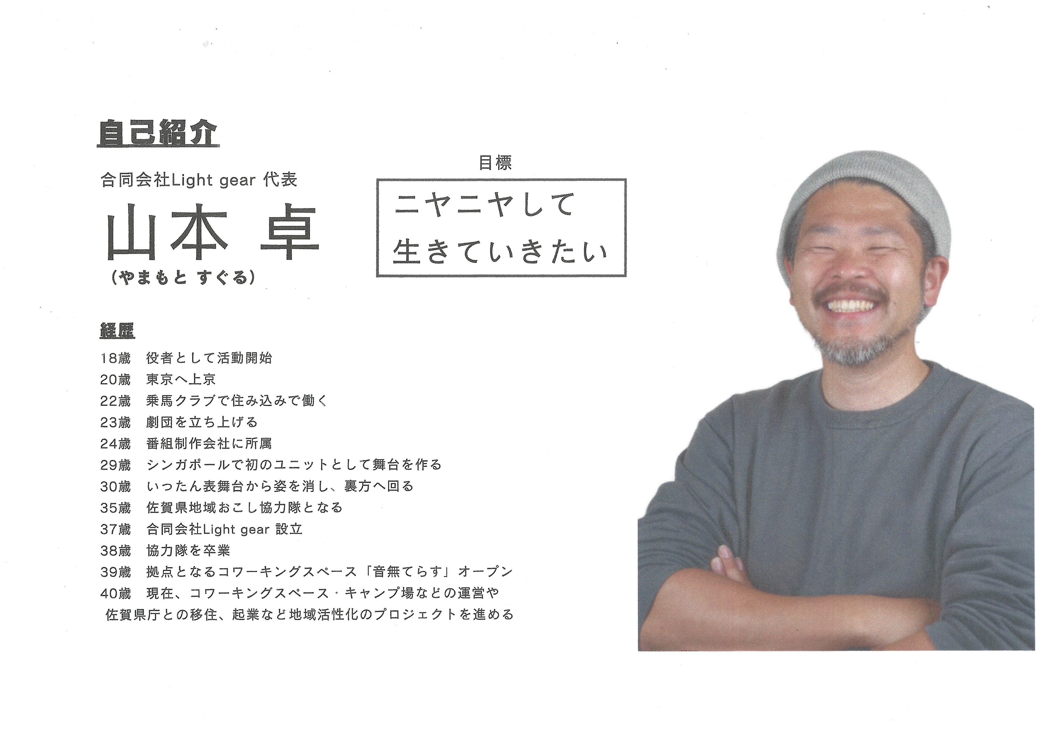 タレント、俳優、番組制作会社勤務等々、色んな経験を経て、佐賀県地域おこし協力隊となったことを機に佐賀県に移住し、合同会社 ligt gear を立ち上げた山本氏のテンポ良い話に、受講生の皆さんも熱心に聞き入っていました。