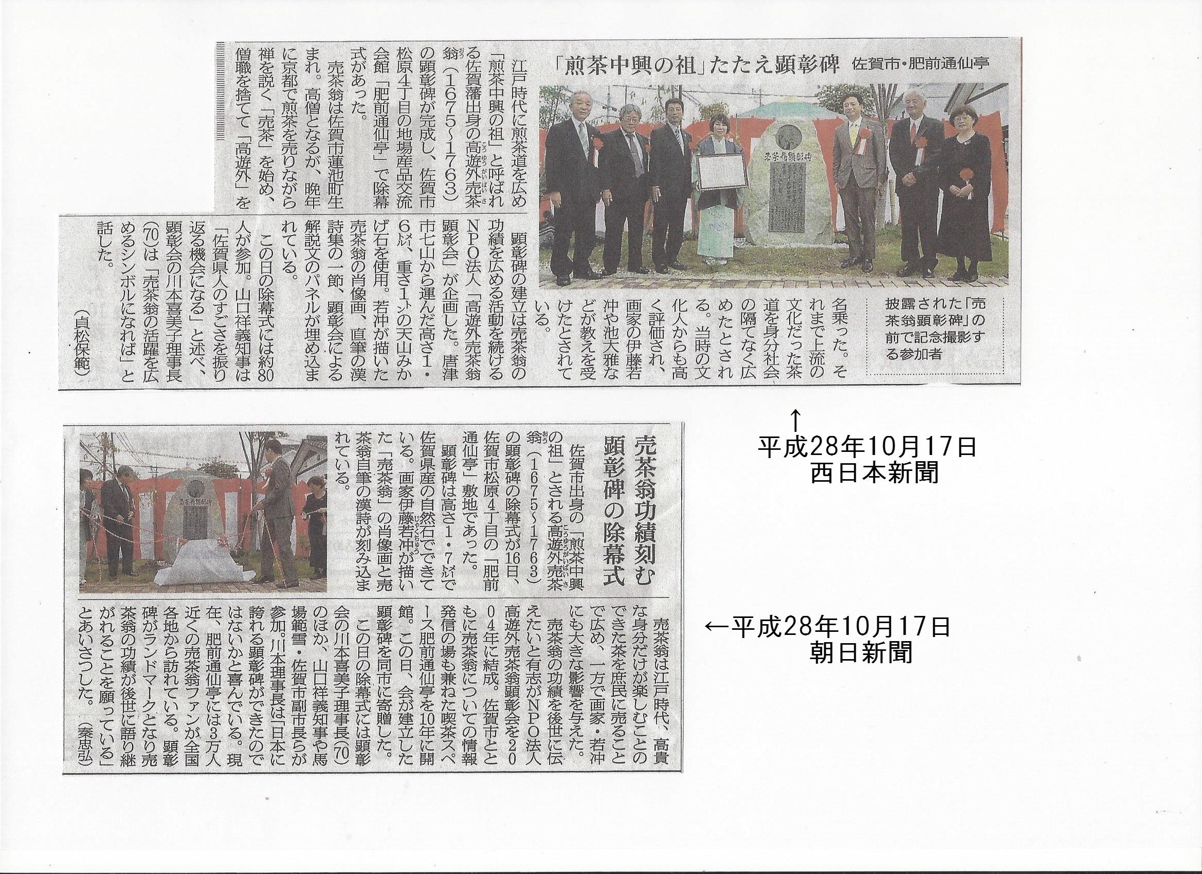 当日の様子は、山口佐賀県知事のフェイスブックに掲載していただき、佐賀・朝日・西日本新聞にも掲載されました。さらに、当会のホームページ・フェイスブックをご覧になった方からのお問い合わせも多く売茶翁の広がりを実感しております。