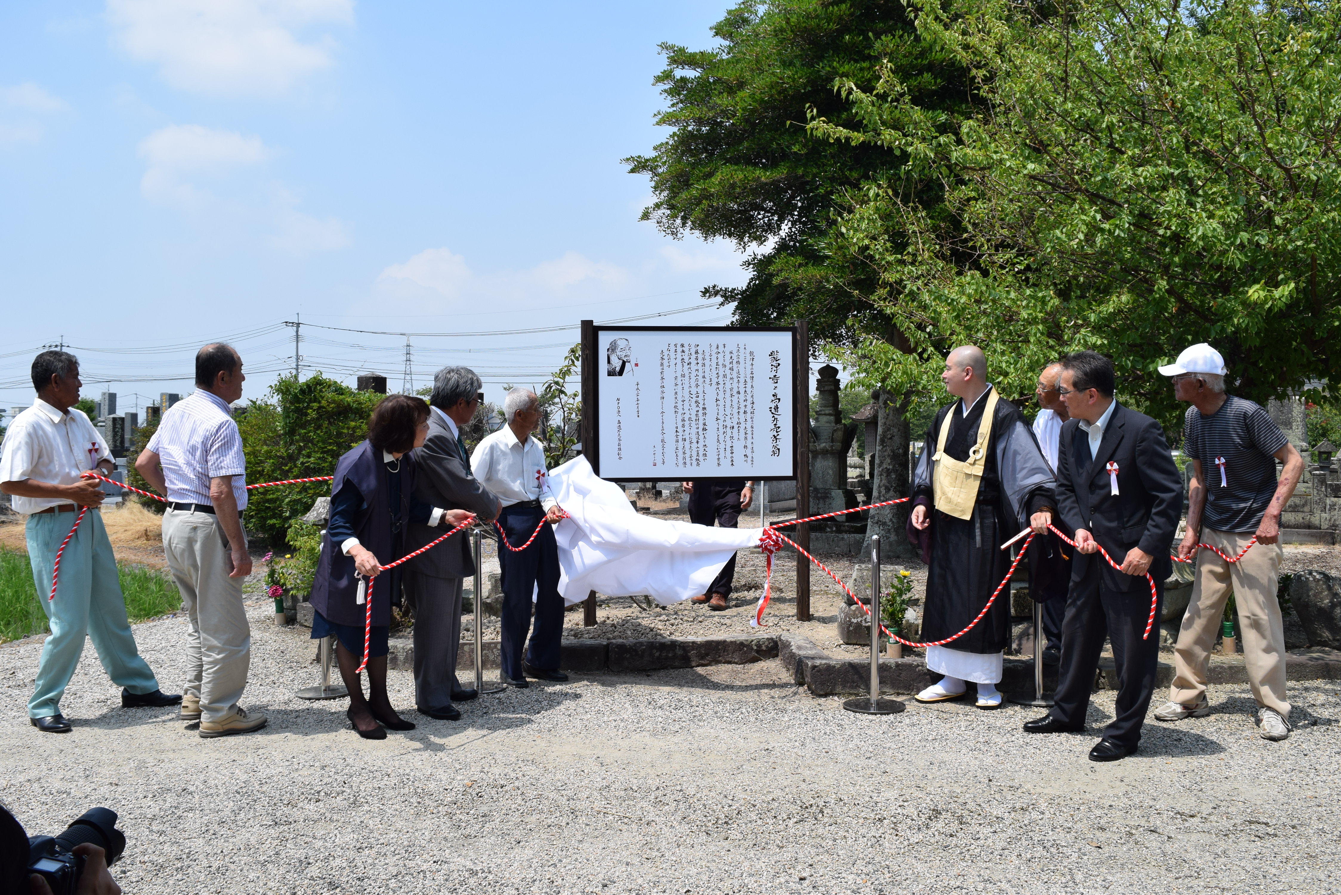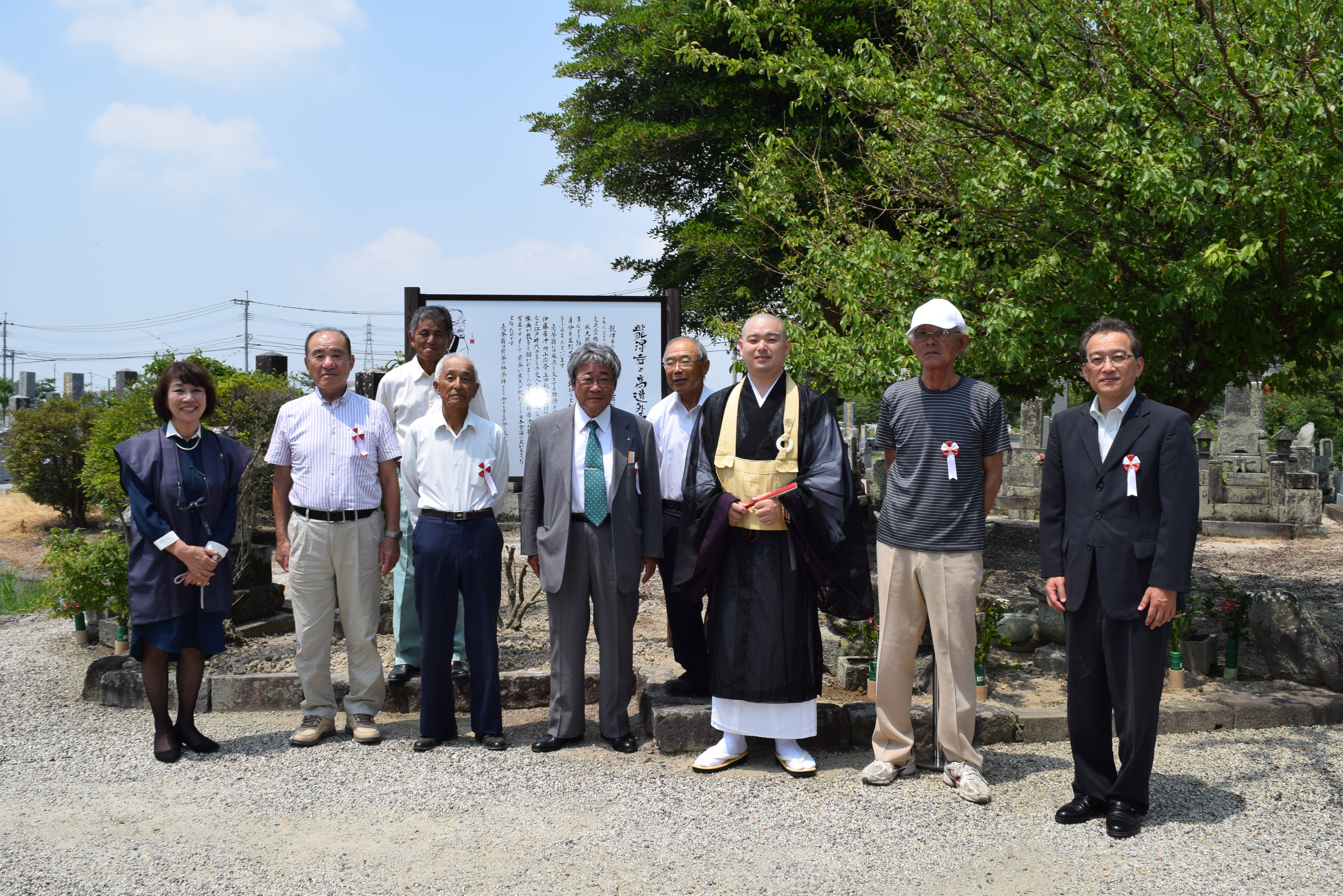 都合を大きく占めるのは、立てるなら、雨風に強い金属製でと考えていたからです。どうにか予算面の工面が付き、龍津寺の国崎住職にご相談したところ「お願いします」との承諾をいただき、7月17日に除幕式の運びとなりました。