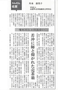 今年、私は佐賀新聞の「ろんだん佐賀」に執筆の機会を得ています。 5月は「若冲に師と仰がれた売茶翁」を書いてみました。