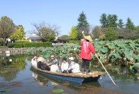 お天気にも恵まれ雲一つない秋晴れの中、ハスの繁るお濠、舟の中から見る風景は風情があり、陸とは違う時間が流れているようでした。