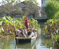 H26年度後期おもしろ学、早くも6回目を向かえました。 今回は佐賀城のお濠に浮かぶ「どんこ船」体験です。 ご案内いただいたのは、NPO九州さがプロジェクトの原田彰氏