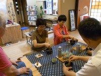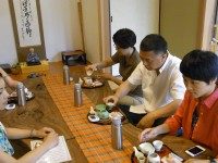 まず、売茶翁に関するDVDの中国語バージョンをご覧いただき、石臼を使っての抹茶挽き体験、そして肥前通仙亭一番のお勧め煎茶セットを飲んでいただき、「美味しかった、面白かった!」と喜んでいただきました。