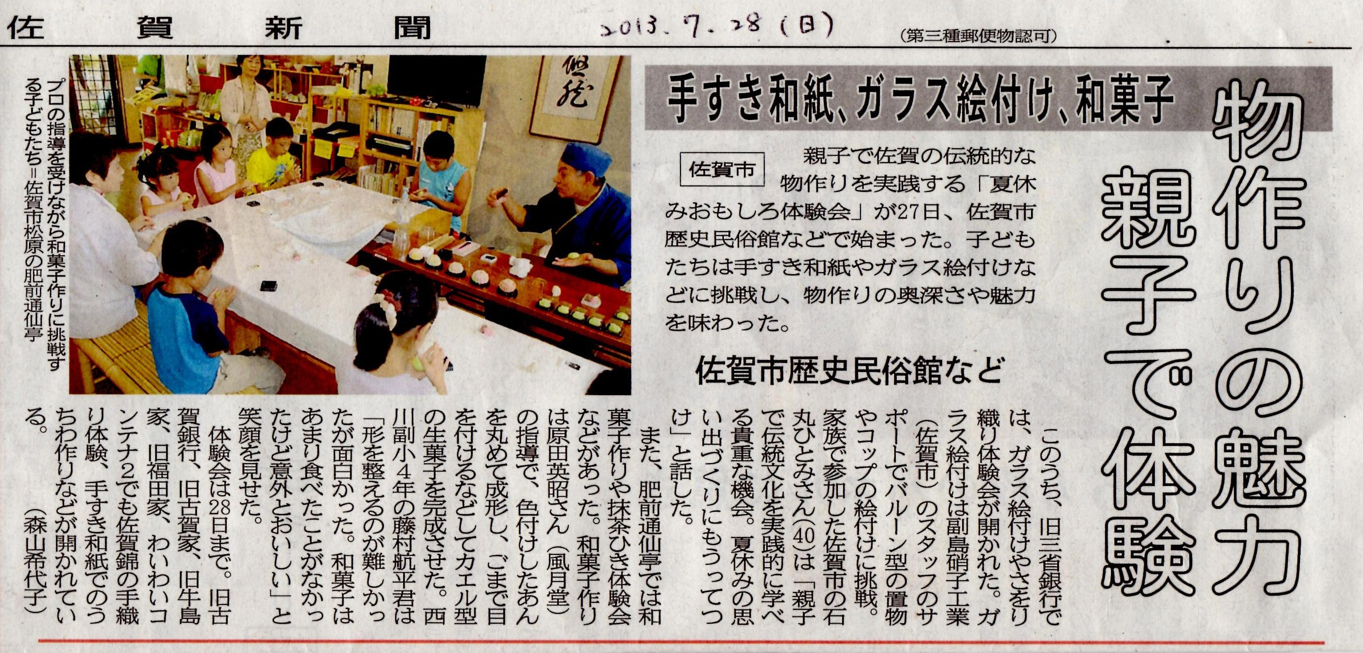 先日もお知らせしましたように7月27日、28日の両日、肥前通仙亭、佐賀市歴史民俗館などを会場に夏休みおもしろ体験会が開催されました。