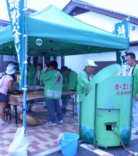 他にも、嬉野茶釜炒り手もみ体験、石臼で抹茶挽き体験なども行われ、1分間に一万個のシャボン玉を作れるシャボン玉製造機から無数のシャボン玉が飛び出すと子ども達から歓声があがりました。